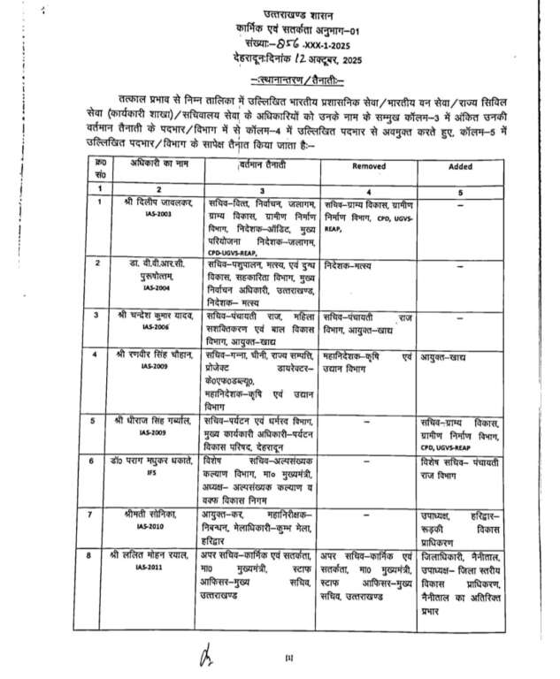 (बड़ी खबर) शासन ने किए बड़े तबादले, नैनीताल के नए DM बने ललित मोहन रयाल, नगर आयुक्त परितोष वर्मा।