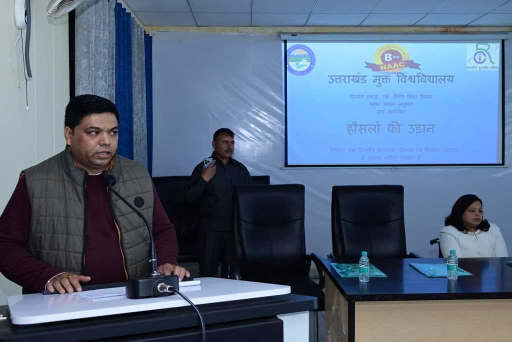 उत्तराखंड मुक्त विश्वविद्यालय हल्द्वानी के दिव्यांग प्रकोष्ठ , विशेष शिक्षा विभाग एवं समान अवसर अनुभाग द्वारा “हौसलों की उड़ान” विषय पर एक दिवसीय कार्यक्रम विश्वविद्यालय सभागार में आयोजित किया गया।