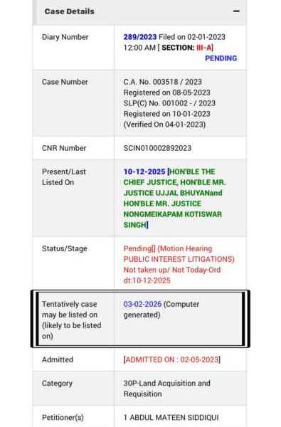 बनभूलपुरा अतिक्रमण मामले पर सुप्रीम कोर्ट में होगी 09 दिसंबर को सुनवाई।