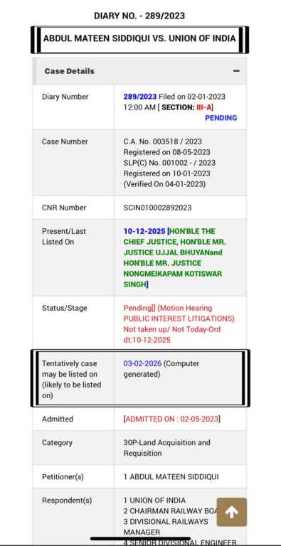 अपडेट: सुप्रीम कोर्ट में बनभूलपुरा रेलवे भूमि प्रकरण की सुनवाई फिर से टल,अब 3 फरवरी को होगी सुनवाई।